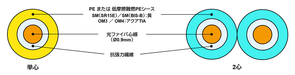 ODPC®用光ファイバコードと現場組立光コネクタにより現地で光パッチコードの作製が可能です。