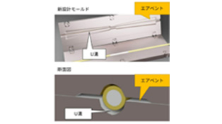 ガラスモールドのU溝にエアベントとなる段を追加することで、樹脂の流れがスムーズになり長尺でも安定したリコートが可能です。