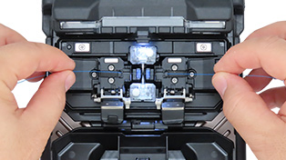 光ファイバを左右同時に前処理、セットする機構により、接続作業全体の時間短縮が可能です。