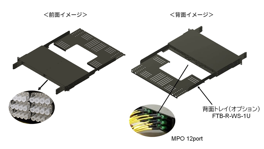 19インチラック1Uで144心の高密度実装で省スペース化に寄与するとともに、モジュール引き出し機構により光コネクタの挿抜が容易であり設置工期の大幅な短縮に貢献します。