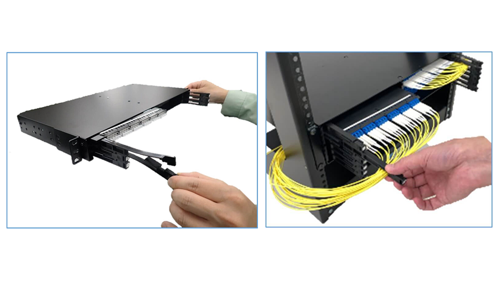 モジュール引き出し機構によりスムーズな光配線を実現します。特定のコネクタに容易にアクセス可能です。