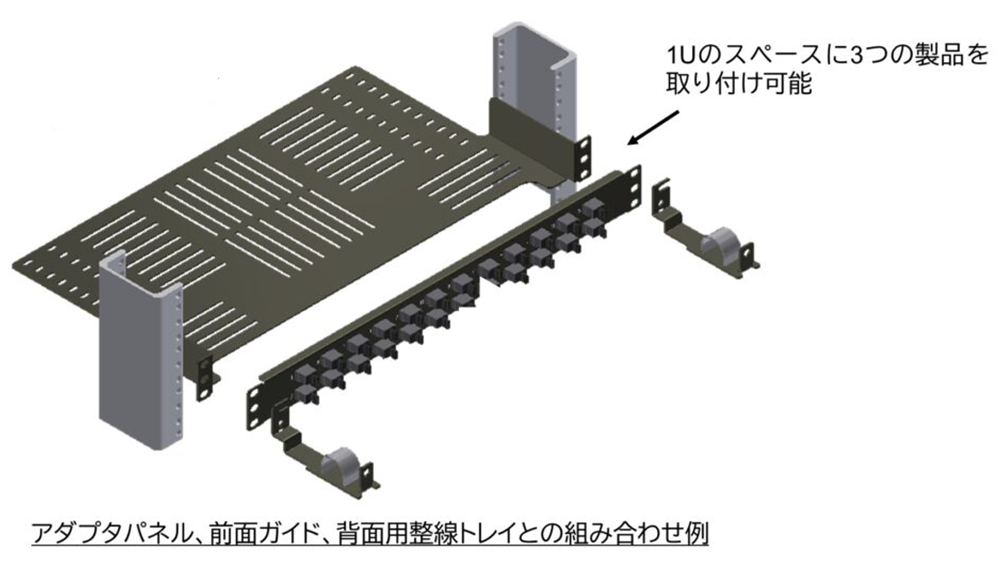 19インチラックに直接取付ける各種アダプタパネルも取り揃えています。オプショントレイと組み合わせて余長も収容できます。