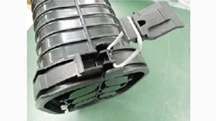 小さなハンドホールへの適用を目的として設計された小型・高密度タイプのポット型地下用光クロージャです。