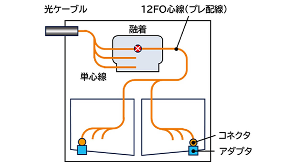 データセンタ内における光ファイバケーブル成端を伴う高密度光配線が可能で、12心テープ心線、12心SWR®の光ファイバケーブルに対応します。