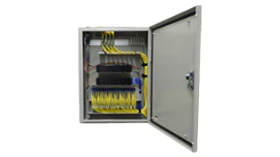 光成端ユニットは最大200心まで収容可能。多心数の光ファイバ接続に対応し、大規模ネットワークにも適応します。