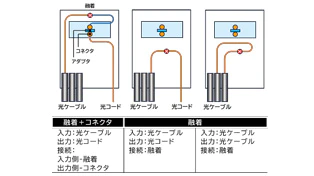 • 入力は多心光ファイバケーブル、光成端箱内のアダプタを介してコネクタ接続後、単心光ファイバケーブルを出力